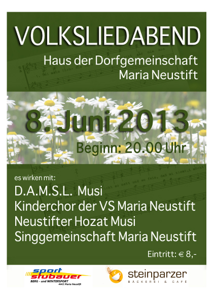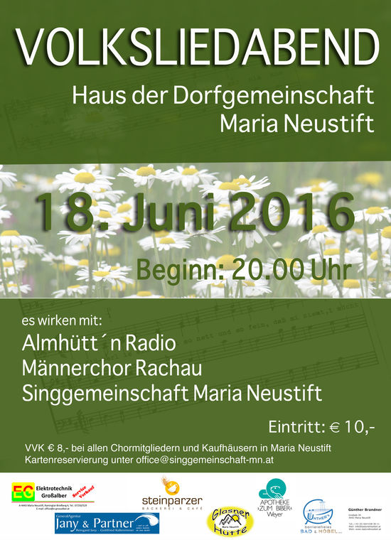 Die Singgemeinschaft Maria Neustift lädt dich zum Volksliedabend ein.