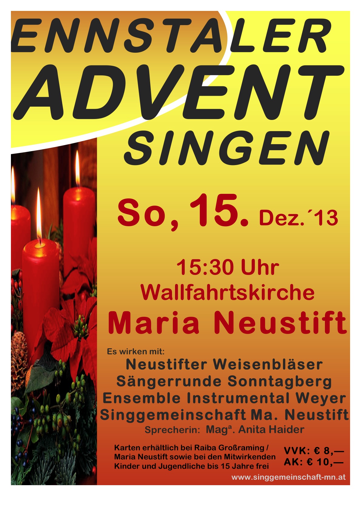 Am 15. Dezember 2013 lädt die Singgemeinschaft zu einer besinnlichen Stunde mit Liedern zum Advent.